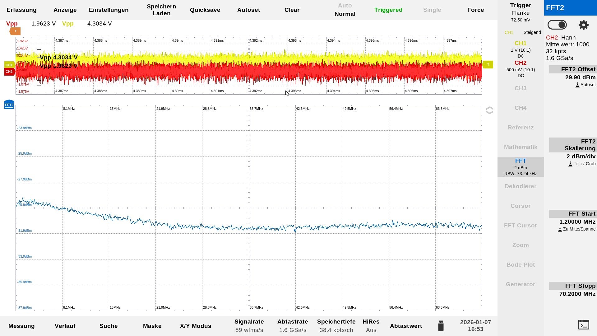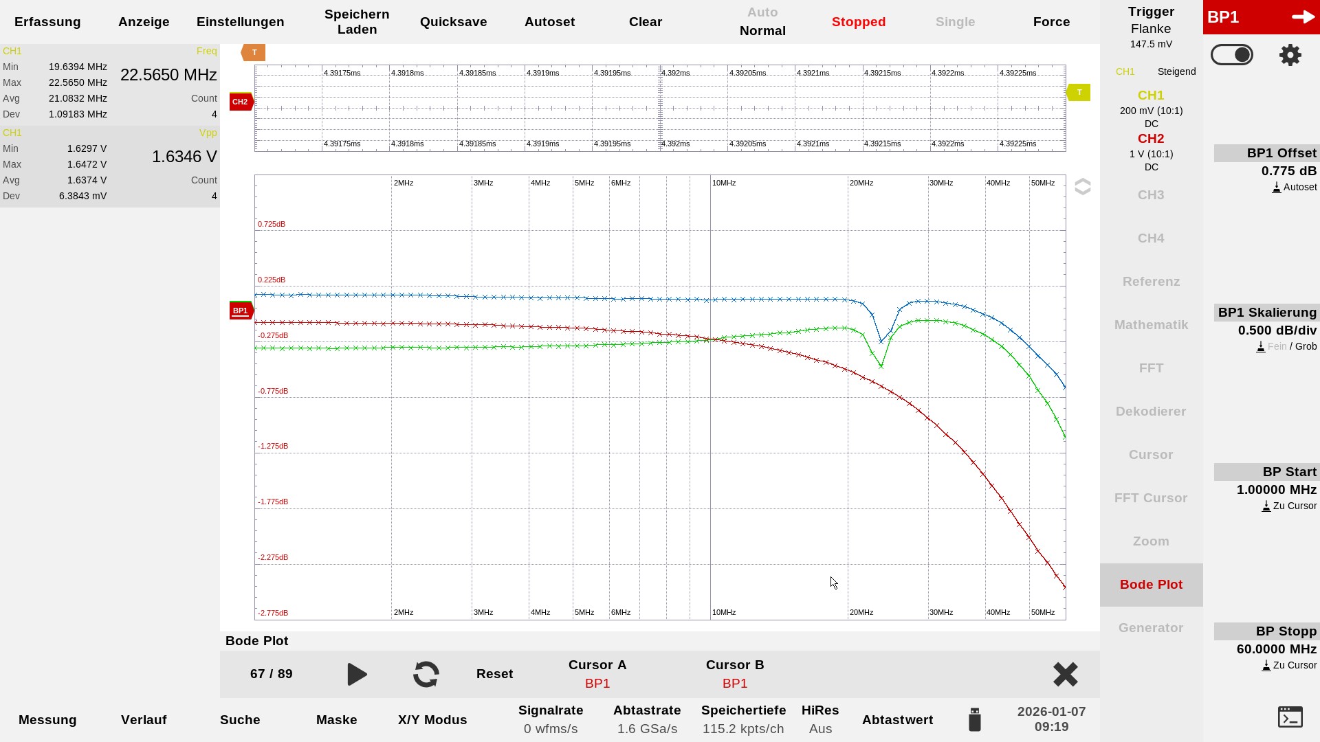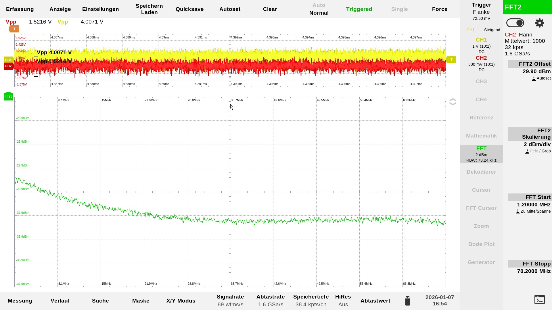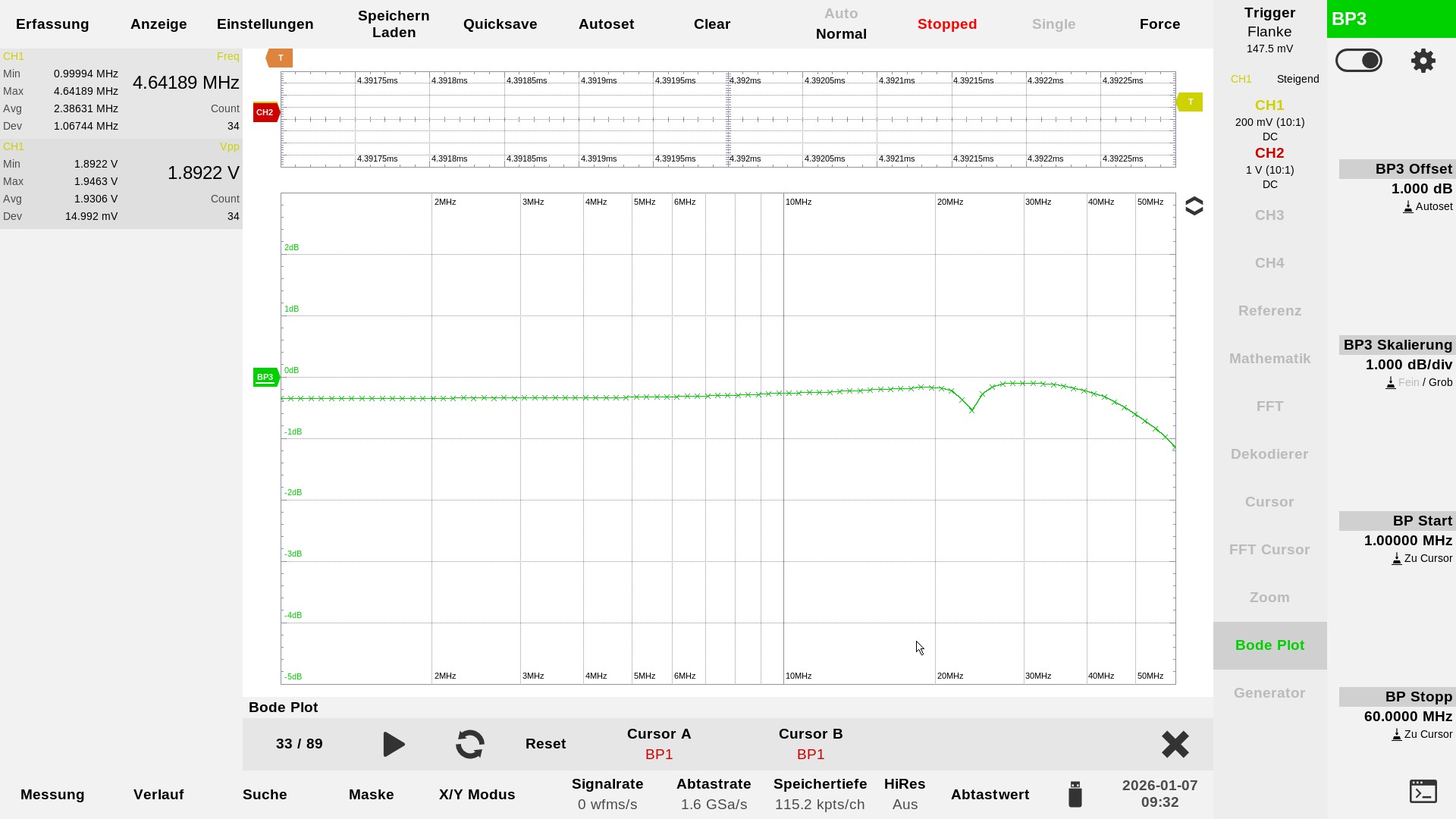 Zum Messen stand das neue Magnova Oszilloskop mit eingebautem BodePlotter zur Verfügung. Außerdem habe ich die Frequenzgangmessungen mit einem selbstgebauten Rauschgenerator wiederholt.