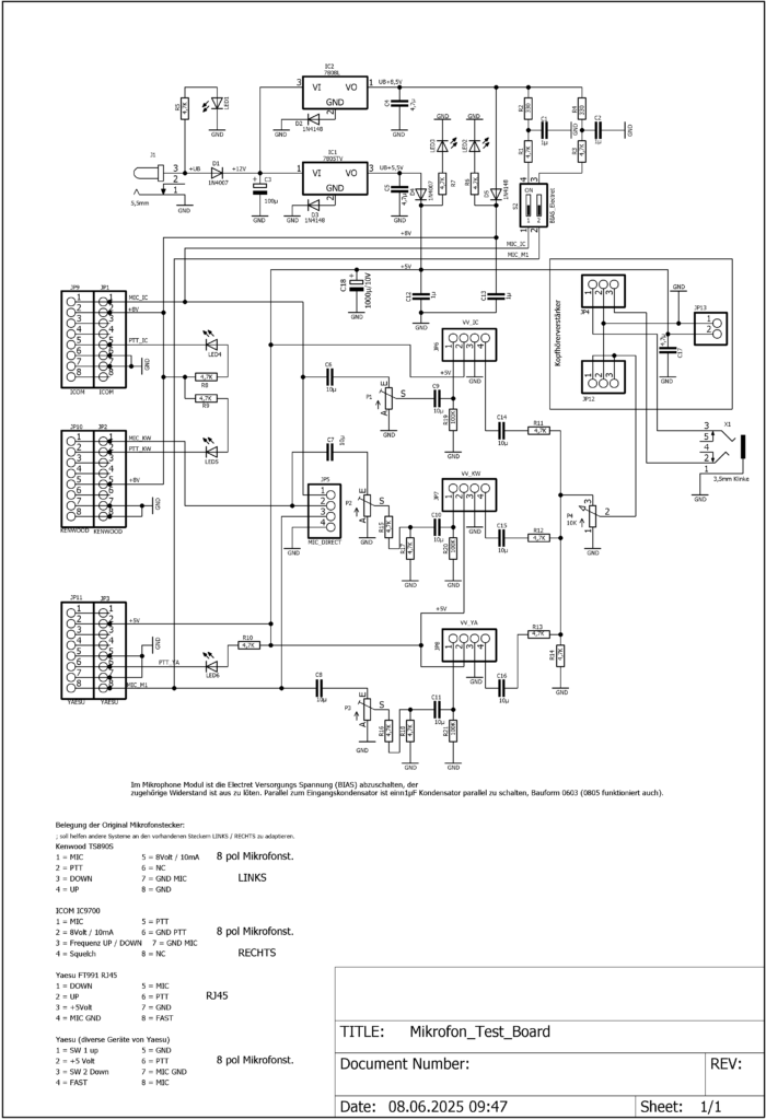 Keine Modulation am Transceiver, was ist das denn schon wieder, bestimmt irgendeine Einstellung falsch…oder ist das Mike defekt, wie unterscheiden sich die Mikros im Klang untereinander…ein Testgerät für Mikrofone der Marken Icom, Yaesu und Kenwood muss her.